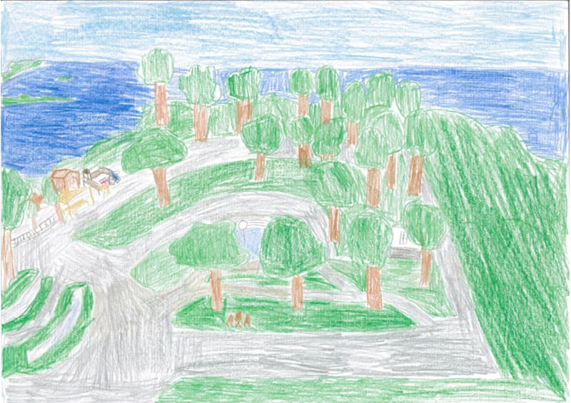 モチーフをしっかり観察し、細かい色使いや描き方を工夫しているところがとても良かったです。あぐりの丘の見どころを全部詰め込んで賑やかな作品に仕上げたり、池の飛び石を真上から描いたりと、鳥目線のような自由な発想も素敵です。生き物や植物の特徴や質感などを良く捉えていました。スケッチ大会の感想の中に「絵をかくのが楽しかった」「はじめて外でスケッチした」という言葉がたくさんありましたが、作品自体に力があり、楽しい気持ちがしっかりと伝わってきました。