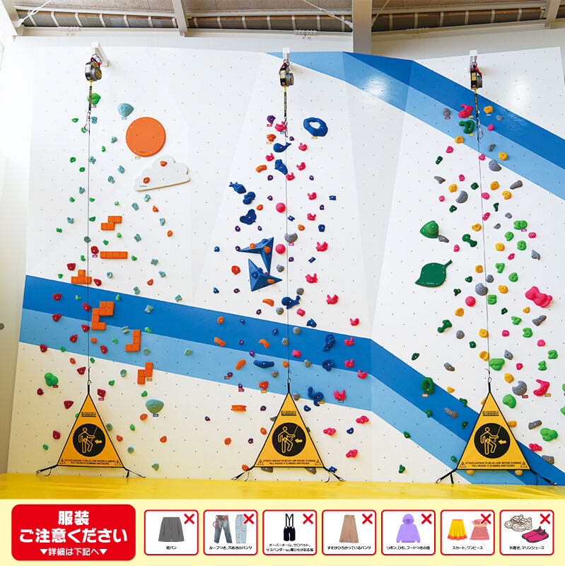 ※クライミングウォールについては、5歳以上、15キロから140キロのお子様が利用できます。